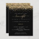 Dourada Glitter Hen Night Black. Um alternativo de 4,5 pol x 5,6 pol com preço inferior. Disponível em um STOCK DE CARTÃO SEMI-GLOSS 110 lb, que é a opção padrão (mais espesso para convites), OU um STOCK de PAPEL THINNER FINISH 80 lb FINISH (ideal para gabinetes). Os envelopes são um extra opcional e são ligeiramente maiores que o tamanho da placa. Estilo de brilho para o seu Hen Party com uma borda de brilho dourado nos dois lados e fundo preto clássico. Personalize facilmente o texto para seus próprios detalhes. Você também pode alterar as cores do texto e do plano de fundo por meio da opção personalizar mais, se desejar.
