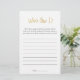 Este jogo de chá de panela de estilo feminino "Quem sou eu" será amado pela maioria das noivas a ser. A design romântica apresenta a inscrição no ouro e um fundo de mármore rosegold na parte de trás do panfleto. Você pode personalizar a parte traseira do cartão com o nome da futura noiva e a data da noiva ou do chá de casamento. Adicione seu texto personalizado a este design usando as caixas "Editar este modelo" no lado direito do item ou clique no botão "Personalizar" para organizar o texto, alterar as fontes, a cor da fonte e a cor do plano de fundo.