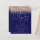 Um valor para o alternativo do ORÇAMENTO em tamanho menor de 4,5 x 5,6" de semirbrilho de 110 lbs, que é de espessura semelhante a um cartão postal (no entanto, não é adequado para uso como cartão postal). POR FAVOR, OBSERVE QUE HÁ UM convite por folha. Glitter De Faux Dourado Do Rosa De Orçamento Fazemos Simples Convite De Marinho De Casamento De Código QR. Adicione seu código QR ao seu site de casamento no verso para que seus convidados possam RSVP e ver todos os detalhes on-line sem a necessidade de gabinetes separados. O script do conjunto de na moda. Nós pegamos o palco central no topo, e uma borda suave do topo do brilho no rosa dourado está em ambos os lados. O resto do texto que você pode personalizar facilmente. O texto está em cor-de-rosa pincelado suave sobre um fundo de azul-marinho. As cores de texto e de fundo podem ser alteradas se você quiser se adequar melhor ao seu tema de casamento através da opção personalizar mais.