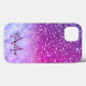 Essa capa de telefone móvel iPhone 13, roxa e brilhante, pode ser personalizada com seu nome e monograma.