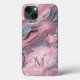 Capa de telefone cinzenta-rosada, Rosa, de agata cor-de-rosa quartil, brilho monograma com espirais de mármore de talho, turquesa, ouro rosa e ameixa, juntamente com o brilho da brilha falsa espalhada por cima. Adicione a sua inicial para um design verdadeiramente personalizado. Perfeito para a sua estética chique.