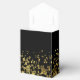 Um padrão com brilho dourado sobre fundo preto torna esta caixa de favor elegante e perfeita para arrumar um presente para um ente querido. Pode adaptar o texto aos seus desejos e necessidades.