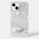 Um elegante e brilhante fundo metálico falso prateado. Decorado com pó falso de cinza prateada. Personalize e adicione seu nome. O nome é escrito com um script estilo preto moderno, escrito à mão.