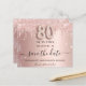 Uma cinta e uma moda Salve a placa Date para uma festa de aniversário 80. fundo rosa de gradiente dourado decorado com rosa dourado e gotas luminosas de prata sujas. Personalize e adicione uma data e um nome/texto. O texto: Salvar a Data é gravado com um script de estilo com letra de tendência grande com alternâncias. Número 80 com uma fonte no estilo do balão.