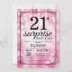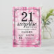 Surpreenda o aniversário de 21 anos Invitation com luzes cor-de-rosa com fundo brilhante rosa. Aniversário Rosa. Aniversário Adulto. Homens ou Mulheres no Dia Convidam. 13 15 16º 18º 20 21rua 30 40º 50º 60º 80 de 70 100º, qualquer idade. Para mais personalização, clique no botão "Personalizar" e use nossa ferramenta de design para modificar este modelo.