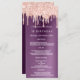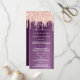 Este glamouroso e elegante convite do Programa de Aniversário de 18 anos é o design perfeito para a jovem aniversária moderna. Seu impressão apresenta brilho brilhante de rosa-ouro e goteja convites. Na parte de trás está um gradiente roxo que adiciona um pouco de toque especial. Esta design compromete perfeitamente o glamour, a classe e a simples elegância. Isso certamente fará sua filha e seus convidados sorrirem.