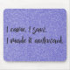 Adicione um toque divertido ao seu escritório doméstico ou ao seu espaço de trabalho com um Mousepad Purple Glitter "Eu o fiz estranho". Mousepad design apresenta o texto "Eu vim. Eu vi. Eu o fiz estranho." em uma fonte escrita à mão contra um fundo roxo brilhante. Itens de presentes adicionais disponíveis com este design, bem como uma variedade de cores.