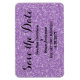 Imã salve a data Glitter elegante e chique com uma reluzente roxa que parece um fundo de arte digital. Fácil de personalizar com seus detalhes de casamento. Para obter mais opções de personalização, clique no botão Personalizar Ti. //NÃO REAL GLITTER - IMAGEM PLANA IMPRESSA ARTE DIGITAL//
