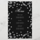 Design de "Programa de Festa de aniversário" elegante com Confetti Glitter em Prata e Preto com texto personalizado.