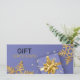 Design de férias de alta qualidade elegante com flocos de neve glamourosos de ouro brilhante e caixa de presentes em fundo azul. Esta certidão festiva é perfeita para a sua pequena empresa ou para oferecer amigos e família, especialmente para o Natal.