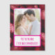 Compartilhe seu amor com este cartão magnético personalizado, com sua foto favorita de casal, emoldurada com corações brilhantes vermelhos e pretos e a citação lúdica, "Você é o que eu mando de volta imediatamente". Uma perfeita manutenção para o Dia do Namorados ou aniversários! Recursos: personalizável com sua foto favorita do casal. Suporte magnético para exposição em frigoríficos e outras superfícies. Impressão de alta qualidade com detalhes cardíacos inspirados em brilho.