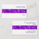 Modelo de cartão de negócios com um design moderno com estrelas espalhadas sobre um padrão estilizado de "aparência sequencial" em tons de roxo e roxo sobre um fundo branco. Observe que esta é uma imagem de arte digital impressa, ela não brilha ou contém cinzas ou sequências reais.