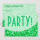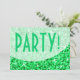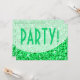 Convite com um design moderno com estrelas espalhadas por uma forma estilizada de "aparência sequencial" curvada e 'Partido!' em tons de verde. Pode ser usado como um fundo para o seu próprio texto, imagens e ideias. O texto pode ser facilmente alterado usando o modelo fornecido ou clique no botão 'Personalizar o texto' para fazer outras alterações. Observe que esta é uma imagem de arte digital impressa, ela não brilha ou contém cinzas ou sequências reais.