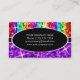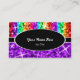 Cartão de visita com um design moderno com estrelas espalhadas por bandas estilizadas de "aparência sequencial", de cor arco-íris, sobre fundo roxo, com texto escrito em branco em forma oval preta. Um design personalizável para você personalizar com seu próprio texto, imagens e ideias. Observe que esta é uma imagem de arte digital impressa e não contém cinzas ou sequências reais