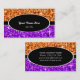 Modelo de cartão de negócios com um design moderno com estrelas espalhadas sobre um fundo estilizado de "aparência sequencial" em tons de laranja e roxo, com um oval preto e uma faixa revestida com texto branco e branco. O texto pode ser facilmente alterado usando o modelo fornecido ou clique no botão 'Personalizar o texto' para fazer outras alterações. Observe que esta é uma imagem de arte digital impressa, ela não brilha ou contém cinzas ou sequências reais.