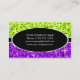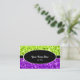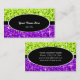 Modelo de cartão de negócios com um design moderno com estrelas espalhadas sobre um fundo estilizado de "aparência sequencial" em tons de verde limão e roxo com um oval preto e estriado revestido de um texto branco e branco. O texto pode ser facilmente alterado usando o modelo fornecido ou clique no botão 'Personalizar o texto' para fazer outras alterações. Observe que esta é uma imagem de arte digital impressa, ela não brilha ou contém cinzas ou sequências reais.