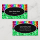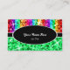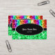 Cartão de visita com um design moderno com estrelas espalhadas por bandas estilizadas de "aparência sequencial", de cor arco-íris, sobre fundo verde, com texto escrito em branco em forma oval preta. Um design personalizável para você personalizar com seu próprio texto, imagens e ideias. Observe que esta é uma imagem de arte digital impressa e não contém cinzas ou sequências reais