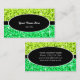Modelo de cartão de negócios com um design moderno com estrelas espalhadas sobre um fundo estilizado de "aparência sequencial" em tons de limão e verde, com um oval preto e uma faixa revestida com texto branco e branco. O texto pode ser facilmente alterado usando o modelo fornecido ou clique no botão 'Personalizar o texto' para fazer outras alterações. Observe que esta é uma imagem de arte digital impressa, ela não brilha ou contém cinzas ou sequências reais.