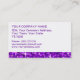 Cartão de visita com um design moderno com estrelas dispersas sobre um fundo estilizado do padrão de "aparência sequencial" em tons de roxo e texto roxo sobre um fundo branco. Observe que esta é uma imagem de arte digital impressa, ela não brilha ou contém sequências ou brilhos reais.