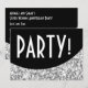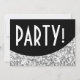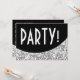 Convite com um design moderno com estrelas espalhadas sobre uma forma estilizada de "aparência sequencial" curvada em tons de cinza prateada contra um fundo preto com 'Partido!' escrito em branco. Pode ser usado como um fundo para o seu próprio texto, imagens e ideias. O texto pode ser facilmente alterado usando o modelo fornecido ou clique no botão 'Personalizar o texto' para fazer outras alterações. Observe que esta é uma imagem de arte digital impressa, ela não brilha ou contém cinzas ou sequências reais.