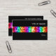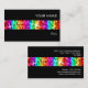 Cartão de visita com um design moderno com estrelas espalhadas por cima de listras estilizadas de "aparência sequencial", de cor arco-íris, sobre fundo preto. Um design personalizável para você personalizar com seu próprio texto, imagens e ideias. Observe que esta é uma imagem de arte digital impressa e não contém cinzas ou sequências reais