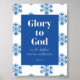 Poster de Natal cristão com "Glória a Deus no mais alto e na paz da Terra" (Luke 2:14), decorada com um padrão ousado de floco de neve azul. Perfeito para decoração festiva ou arte de muro festiva.