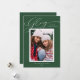 Este cartão com fotos de férias moderno, mas elegante, apresenta um belo fundo cor verde com "Glory" em lindíssima escrita de caligrafia branca. Toda a saudação diz "Glória a Deus no mais alto". Este design acomoda uma foto vertical do solteiro na parte frontal da placa. No verso está o mesmo fundo de cor, ao qual você pode adicionar outra foto e/ou texto adicional selecionando a opção "editar usando a ferramenta design".