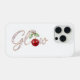 Elegant phone case with “Glow” typography and a jewel-style red cherry for a bold, fashionable look.