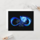 Luminous infinity symbol with glowing, beautiful, lushly blooming rose made of blue flames on black background.