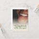Glücklich, Dir, instinto! Kompliment Karte mit lachendem Frauengesicht und handschriftlichen Grüßen auf der Vorderseite der Karte. Restliche Flächen stehen zur freien Verfügung.