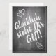Kompliment Karte mit handschriftlichen Grüßen im Kreidetafelstil auf der Vorderseite der Karte. Restliche Flächen stehen zur freien Verfügung.