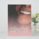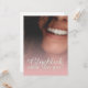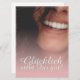 Glücklich, Dir, instinto! Kompliment Karte mit lachendem Frauengesicht und handschriftlichen Grüßen auf der Vorderseite der Karte. Restliche Flächen stehen zur freien Verfügung.