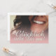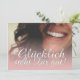 Glücklich, Dir, instinto! Kompliment Karte mit lachendem Frauengesicht und handschriftlichen Grüßen auf der Vorderseite der Karte. Restliche Flächen stehen zur freien Verfügung.