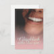Glücklich, Dir, instinto! Kompliment Karte mit lachendem Frauengesicht und handschriftlichen Grüßen auf der Vorderseite der Karte. Restliche Flächen stehen zur freien Verfügung.
