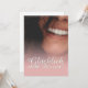 Glücklich, Dir, instinto! Kompliment Karte mit lachendem Frauengesicht und handschriftlichen Grüßen auf der Vorderseite der Karte. Restliche Flächen stehen zur freien Verfügung.