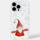 Esta bela capa de telefone de Natal apresenta um gnomo alegre em vermelho num padrão de cinzas branco e prateado nevado. É uma boa ideia para a época das férias de inverno.