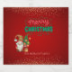 Gnomo bonito com pinheiro, confete e Feliz Natal em um fundo vermelho.