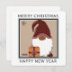 Design de Natal quadrado com um Gnomo de Natal colorido cortado. Feliz Natal e design de feriado de Feliz ano novo em um cartão quadrado em formato exclusivo! Edite seu nome no verso e o ano atual na frente.