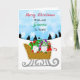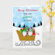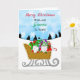 Gnomos de Natal desenhados à mão em um trenó de inverno cheio de presentes, Cartão de Feliz Natal.