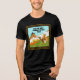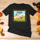 Esta camiseta apresenta dois perus partilhando uma fatia de torta de maçã sobre uma cerca de piquete, é uma forma divertida de dar o tom para riso, boa comida e alegria de férias.