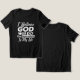 This powerful black shirt proclaims: "I Believe GOD Will Do The Impossible In My Life". The clean white text, contrasting script and block fonts, conveys personal faith, limitless divine power, and hope for miracles.