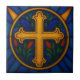 Gold Christian Cross Stained Glass Ceramic Tile