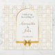 Toast to forever with sparkling wine labels wrapped in gold geometric sophistication, where the ivory arch frames your celebration message. Each bottle becomes a golden vessel of joy, perfectly matching your suite's timeless elegance for unforgettable toasts and favors. Coordinates with other products from the wedding suite.