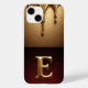Luxurious gold letter E monogram set against a rich dark background with dripping metallic paint and glitter accents, evoking elegance, premium branding, celebration, and sophisticated design for luxury projects.