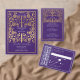 Celebrate your special day with these royal medieval sword wedding RSVP cards against a purple background. You can customize this further by clicking on the "PERSONALIZE" button. PLEASE NOTE: The gold on this item is NOT real foil and is printed in flat colors