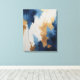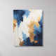 The white background serves as a clean, expansive canvas that allows the blues and golds to truly pop, enhancing their vibrancy and intensity. The overall effect is one of controlled chaos and elegant energy, evoking feelings of strength, discovery, and the beauty found in natural, unrestrained forces. The artwork feels both powerful and refined, making a strong visual statement.