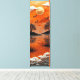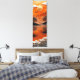 Elevate your interior with this luxurious vertical canvas capturing a tranquil lakeside scene glowing under a deep orange horizon. A textured metallic gold sun becomes the focal point, while elegant cranes soar gracefully across sculpted Japanese-style clouds. Layered glass-cut trees frame the view, their silhouettes reflected in the still water for a serene, meditative effect.