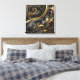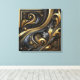 An intricate design composed of swirling golden patterns set against a dark background. The flowing curves create a sense of movement and elegance.