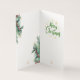 Ein luxuriöses, festliches Design, das das goldene Initial "C" mit einer königlichen Krone, funkelnden Tannen- und Mistelzweigen sowie einem lächelnden Weihnachtsmann kombiniert, der eine glänzende Weihnachtskugel hält.