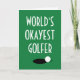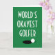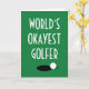 Cartão de cumprimento engraçado de golfe World's Okayest Golfer. Cartões de cumprimentos personalizados especiais para jogador de golfe, amigo, colega de trabalho, família, filho, filha, marido, esposa, mãe, pai, namorado, namorada, chefe, parceiro de negócios, crianças, treinador, instrutor, professor, amigo, neto, etc. Bola de golfe branca na borda do buraco no design do green. Tamanho extra grande disponível também. Perfeito para amantes de golfe. Este cartão físico real é enviado diretamente online pela empresa de impressão Zazzle ao destinatário. Ótimo para aniversário, aposentadoria e mais.